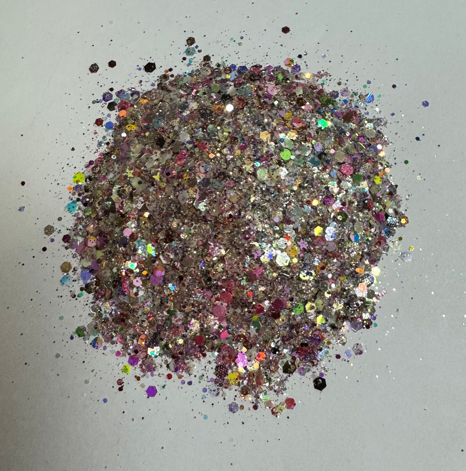 A cosmic cocktail of shimmer and stardust—poppin’ with bright bursts, holographic magic, and just enough chaos to keep you dreaming.