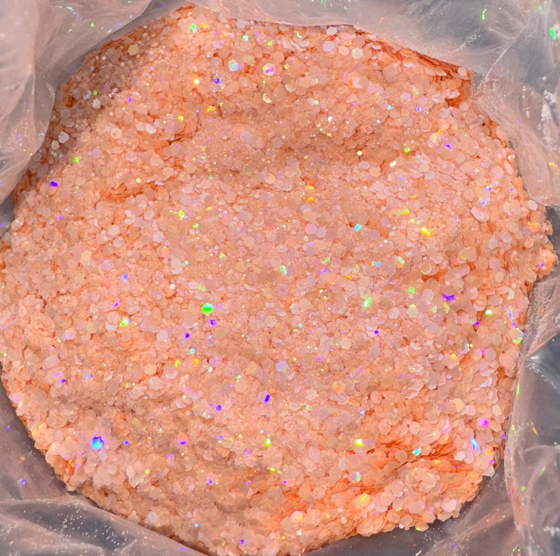 —a soulful swirl of sun-washed peach, golden glow, and rebel sparkle — this glitter shines with vintage heart and wild spirit.
